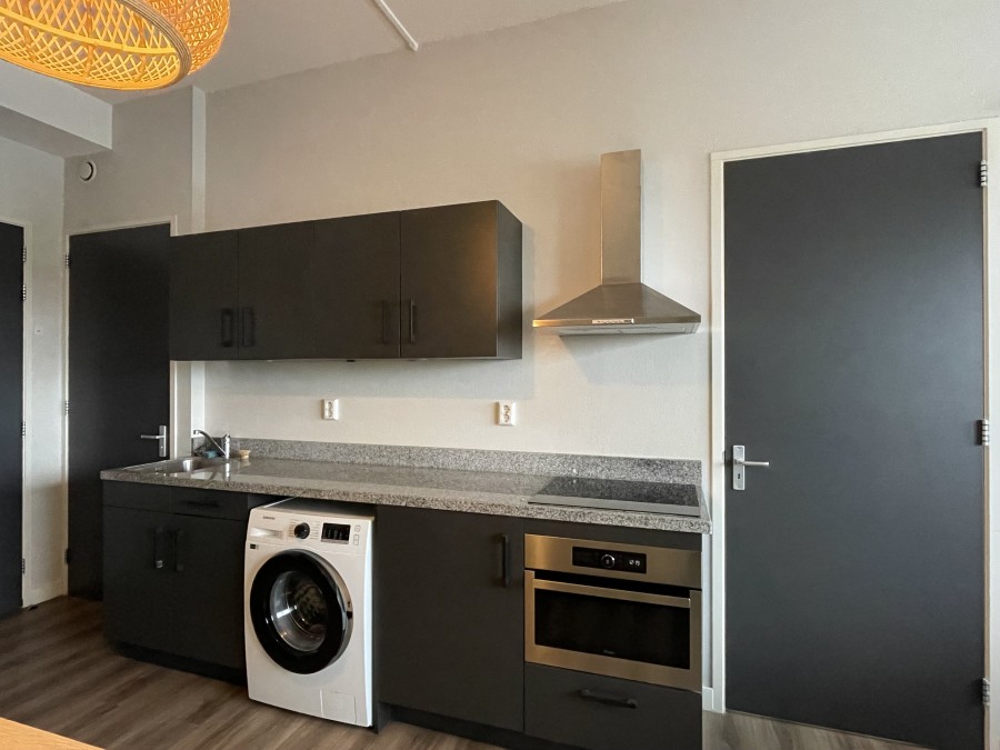 Het appartement van 42m² is slim ingedeeld en beschikt over een open keuken, voorzien van een afzuigkap, inductiekookplaat en een koel-vriescombinatie. De badkamer is uitgerust met een ruime inloopdouche en een stijlvol wastafelmeubel. Er is ook een apart zwevend toilet.