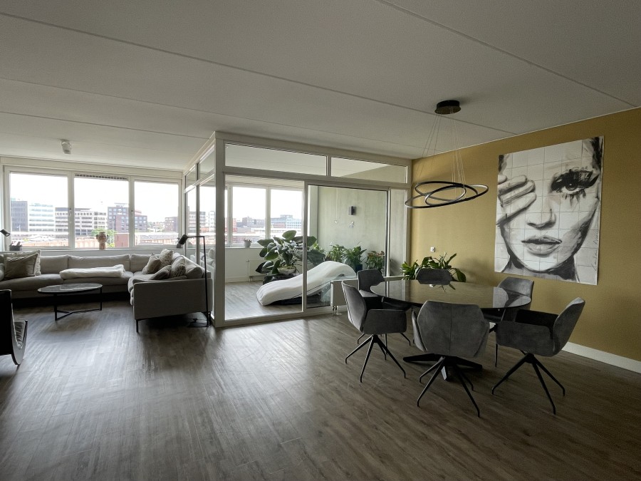 Dit moderne en ruime complex heeft een appartement van maar liefst 120 m² beschikbaar! Het ruime appartement beschikt over 2 slaapkamers, een badkamer, separaat toilet en een woonkamer met serre.