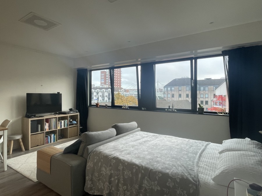 Je huurt een studio volledig gestoffeerd. Er ligt al een PVC-vloer, de wanden zijn voorzien van scan behang, er zijn twee gordijnrails aangebracht waarvan één al is voorzien van in-between gordijnen en je hoeft geen lampen op te hangen want in de plafonds is al LED verlichting aangebracht. Er is zelfs gedacht aan schilderijrails zodat je niet zelf gaten hoeft te gaan boren, wat wil je nog meer!