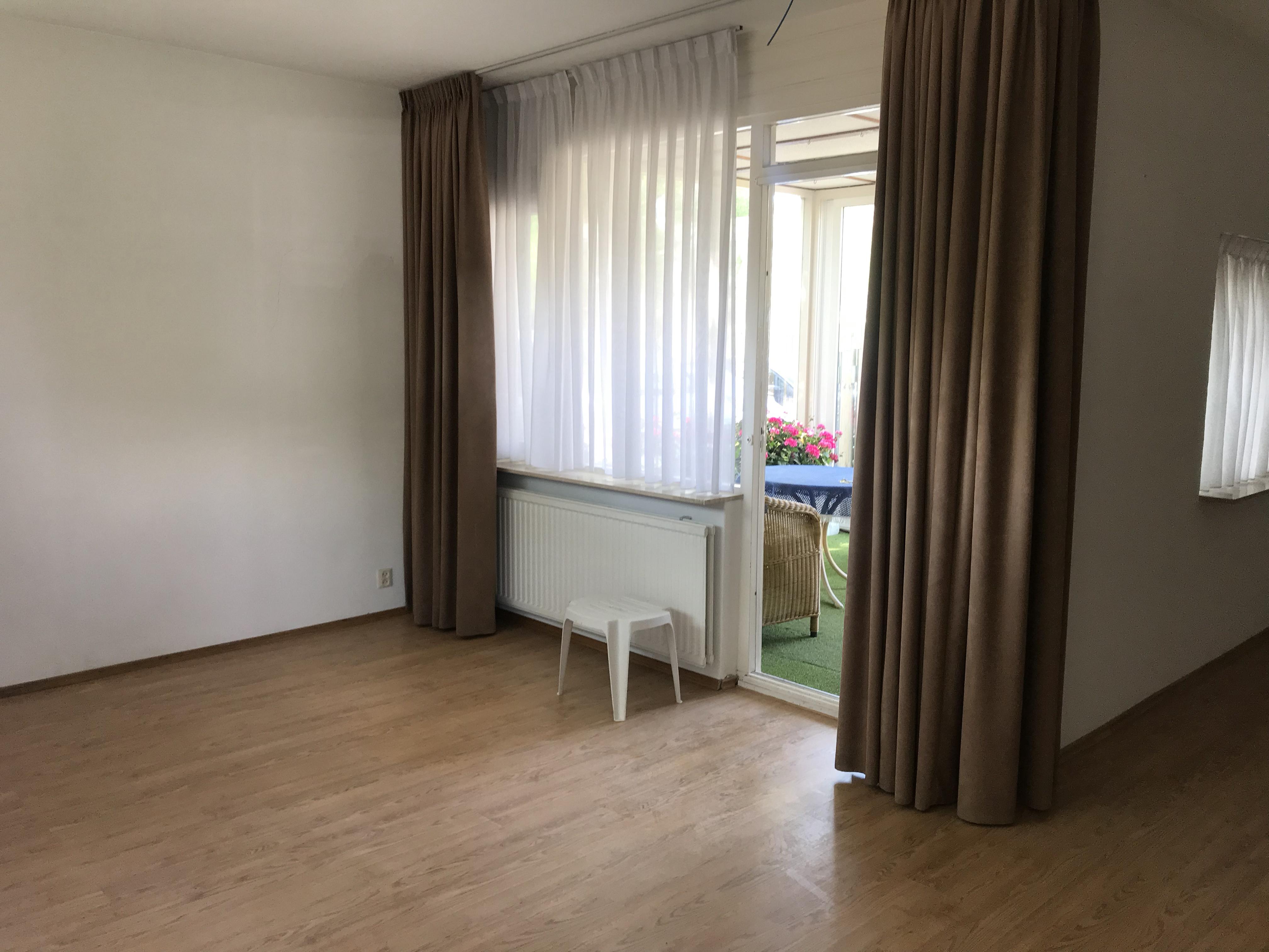 Begane grond: keuken v.v. afzuigkap, combi-magnetron, koelkast en kookplaat, 1 lichte slaapkamer, badkamer v.v. toilet en douche, een ruime woonkamer en een serre.